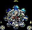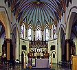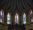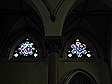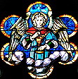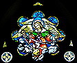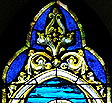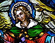 Both windows are composed of antique glass masterfully painted in the Italian Renaissance style. The east occhio, rich in reds and blues, is especially radiant in the morning light...