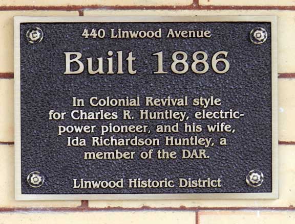The residence was built for Charles R. Huntley and his wife Ida Richardson Huntley. Mr. Huntley was an electric-power pioneer, president of two power-generating companies, and responsible for making Buffalo an early city of electric lighting. He was president of Buffalo General Electric when the white-towered Electric Building downtown was constructed in 1912 as the firm's headquarters. The building has been described as “a strikingly beautiful monument to [his] energy and constructive genius” [Huntley obit., Bflo. Courier Expr., 9/18/1926].