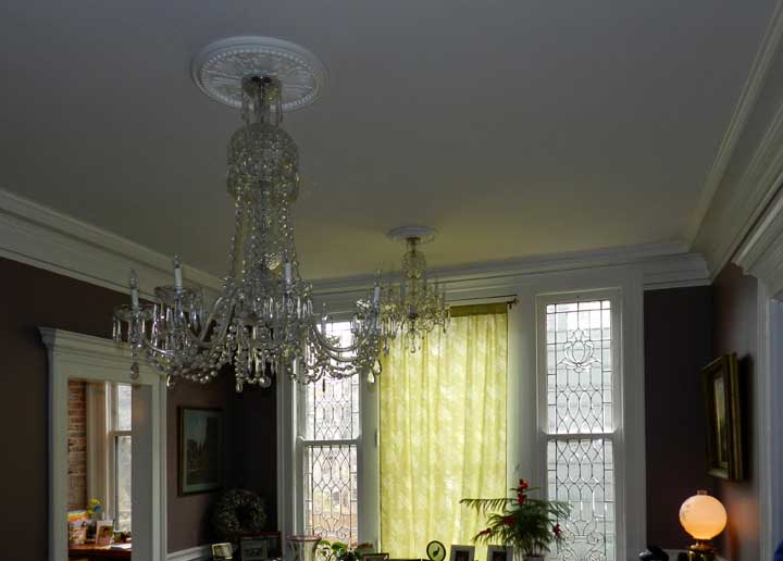 Dining room![]() Dining room Unusual three ceiling lamp fixtures (one not shown) ..... Leaded glass sash windows ![]() Dining room leaded glass sash window |
