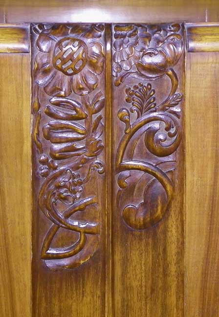 Hall![]() ![]() Art Deco cabinet made in Holland ![]() ![]() Note carving (see below) ![]() Scrolling acanthus plant and face. ![]() Carved, foliated ornamentation ![]() ![]() See windows from the adjoining room (below) |