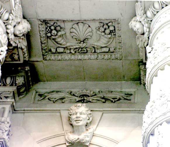 ![]() Joseph Ellicott ......![]() Daniel H. Burnham ... Photo source: Chicago History Museum ... Charles B. Atwood, principal designer of the Ellicott Square Building, the designer-in-chief of the World's Columbian Exposition ![]() ![]() ![]() Postcard ... Note cornice on top of building ![]() 10 stories tall ![]() South elevation ... At left: Fidelity Trust Bank/NYS Dept. of Labor ![]() Cornice, 9th, 10th stories ... Cornice removed in 1971 and partially restored ... Corrugated steel was added in 1971 ![]() Top: Terra cotta figures ... Anthemia feature Medusa superimposed on a palmette ... Egg-and-dart molding below: ![]() Medusa ![]() 10th story ... Below the cornice: Egg-and-dart molding ... Bead-and-reel molding ... Dentils and bellflowers ... Putti flanking crowned cartouche and laurel leaf wreath ... Grotesque with pendant bellflowers below ![]() 10th story ... Egg-and-dart molding ... Bead-and-reel molding ... Dentil molding and bellflowers .. Grotesques with pendant bellflowers below ... Laurel leaf band course ![]() 10th story ... Grotesque with pendant bellflower ... Side panels with leaf-and-dart molding ![]() 9th story ... Laurel leaf band course ... Ancone-shaped keystone in center of the arch decorated with Egg-and-dart molding and rosettes ![]() 7th story ... Dentil molding ... Quoins ... Vermiculated ancone keystone ... Pendant bellflower ![]() 6th story ... Greek key molding ... Dentil molding ... Vermiculated bands on pilasters ... Vitruvian wave molding ![]() 6th story ... Vermiculated band ... Vitruvian wave molding features bellflowers ... Dentil molding ![]() 2nd story ... Egg-and-dart molding ... Quoins ![]() 1st story ... Cast iron and glass ... Detail of south elevation where the Statler Restaurant was located in the Ellicott Square Building ... Three details below: ![]() 1st story detail #1 - Cast iron and glass ... Guilloche molding ... Bead-and-reel molding ![]() 1st story detail #2 - Cast iron and glass ![]() 1st story detail #3 - Guilloche molding ... Bead-and-reel molding ... Acanthus leaf above dentils |