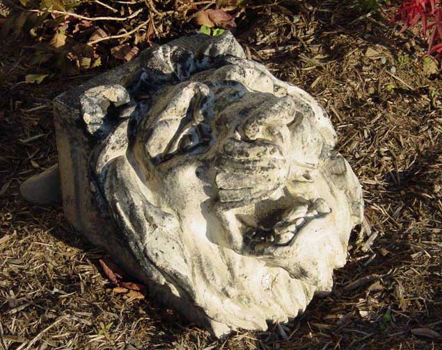As I recall the story from my father, one fell off or was dangerously close to falling off and the decision was made to remove them. There were 10 per side. One day after work, my father noticed the heads lined up on the sidewalk. After he learned they were to be demolished at the end of the day, he took 2 and went home. By the time he returned, the rest were gone. I've heard only 10 of the 40 survived, but I only know where four are. - Michael Reinhardt