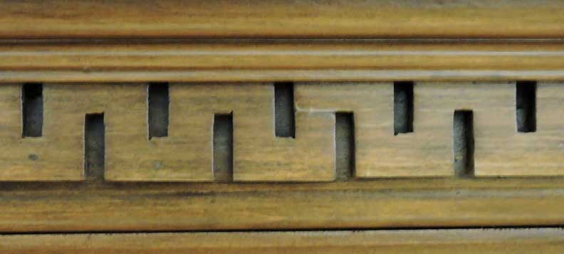 Colonial Revival style fireplace ... Gouged dentil molding