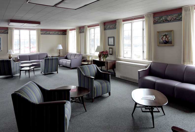 The interior plan of the sanctuary wing reflects the Wren-inspired “auditory” function and is organized in a longitudinal basilica plan. The classical detailing is restrained and the auditorium is well lighted by clear glass windows along the east and west elevations.