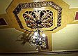 Restored ceiling medallion next to the men's smoking lounge in basement |