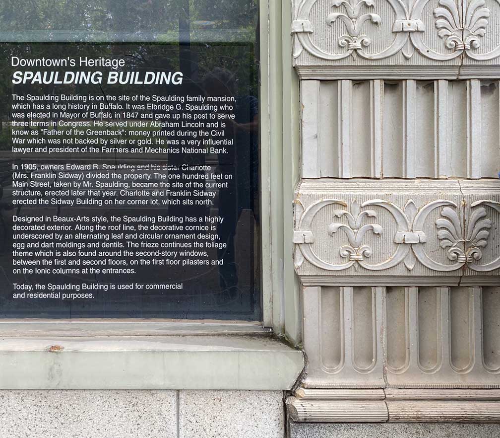 E. G. Spaulding died in 1897, and his house next door, at 775 Main, was soon demolished by his heirs, and a year later there was nothing on the site to indicate that a house had ever been there. The property was acquired by his Sidway heirs, and the Sidway Building erected on the site in 1906.