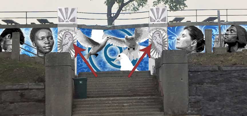 By Megan McElf McElf Glassworks May 28, 2015 (online Nov. 2018) Yesterday I had the honor of meeting the staff and artists from Buffalo Arts Studio that are making the Ray of Light Project possible. I've been brought on board to bring the proposed mosaic portion of the project into reality if that much funding can be secured. So… What is the "Ray of Light "Project? On October 1, 2014, the Goldsmith family of Buffalo lost a beloved family member, Jerald (Dee Dee) Goldsmith, to a violent crime that took her life at just 52 years old and left her seven children without a mother. Now, Dee Dee's family is turning their grief into action for good by joining forces with members of the community to create a mural at Masten Park, the location where Dee Dee lost her life, and an area that is described by neighbors as being known for vandalism and crime. In memory of Dee Dee, the mural will be created to shed a “ray of light” on her memory, promote peace, and provide information on anti-violence and anti-bullying resources for the public. The Ray of Light mural project has quickly become a city-wide campaign to revitalize and beautify a dismal area, and take a stand against domestic violence and bullying. In addition to the artwork adding to the beautification of the site, the area will be cleaned out, landscaping will be added, and increased lighting will serve as a deterrent to prevent such incidents from recurring – making it a safer environment for all. The mural's positive imagery and safer conditions at the location will be inspiring to the public, making the area one of reflection and remembrance for victims of violence, bullying, and their families. The vision of Dee Dee's family is to do something to turn a situation from hopeless into something that can provide hope for others. [NOTE: "It still hasn’t been dedicated. The city is supposed to re-install lighting and allow us to put up signs. Fix stairs, fix railings… actually mow the grass! But we just get silence from city hall on getting those things done and getting it dedicated. We’d love to dedicate it in October, for Domestic Abuse Awareness Month. Maybe next year [2019]." - Megan McElf in a private email on November 6, 2018] Many local organizations have come together to support this very important community project including: Buffalo Arts Studio (BAS), Buffalo Public Schools, City Parks Department, the Family Justice Center, and YWCA of Niagara County. It is anticipated that more groups will come on board as the project evolves. Recently, BAS issued an open call for mural artists to submit proposals, and after careful review of the submissions, local artist Augustina Droze was selected to create the design for the Ray of Light mural project. Her proposed design displays a strong but serene message of non-violence. A very special component of the Ray of Light mural project is the involvement of BAS Jump Start program students. The Jump Start program offers artistic education to middle and high-school students who display an exceptional interest in the arts, and have limited access to advanced art instruction. The Jump Start program empowers youth to explore their interest in art, develop a portfolio, and prepare for entry into college. Students who are selected to receive tuition sponsorships are chosen because they are truly gifted, but need financial assistance. BAS will offer stipends to Jump Start high-school students who come from low-income families, to work on the mural project as part of their hands-on education and training. Students will have the opportunity to be part of the entire process, from instruction on the many steps involved in project development and budget creation, to wall preparation and mural painting. Once the mural and the site improvements are complete, a public unveiling and dedication ceremony will be held at the site in October, 2015. October is not only the same month that Dee Dee was killed, it is also National Domestic Violence Awareness Month. BAS is currently working on a collaborative effort to include local domestic violence and anti-bullying organizations in the ceremony. So here's the design and the plan: ![]() Ray of Light Mural Design arrow columns I've got red arrows pointing to the proposed mosaic columns. These columns measure approximately 4 feet wide by 14 feet tall and there is talk of wrapping the design around the column. Wow. Talk about a monumental task ahead! So into fundraising we go! Even though I'm really just a subcontractor here, I have a lot of interest in this topic from my “previous life” working in forensic science and always feeling strongly about the needs for the rights and recognition of rape and domestic violence victims and their families. So I've got some phone calls to make… … and I've got some thinking and designing to do to figure out some technicalities and make a plan. If funded, it seems like we won't have a lot of time to build this thing out. The hope seems to be a completion in time for an October (yes, of THIS YEAR) dedication… Stay tuned! |
