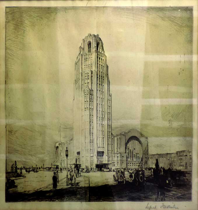 Drawing - Alfred Fellheimer, Drawing of Central Terminal In the Burchfield-Penney Art Center collection