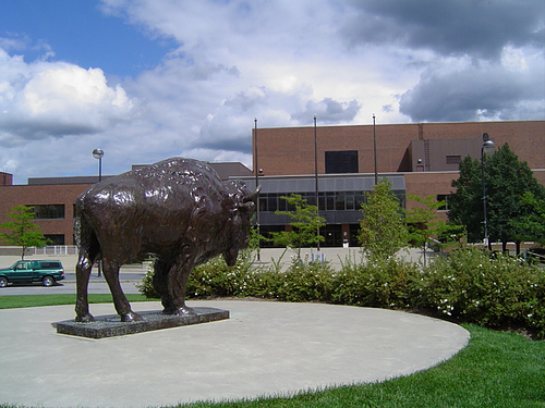 Come this fall, the University at Buffalo will join the group of American universities with large campus mascots when an imposing, life-sized bronze buffalo is installed on the circle in front of Alumni Arena and the Center for the Arts on the North Campus.