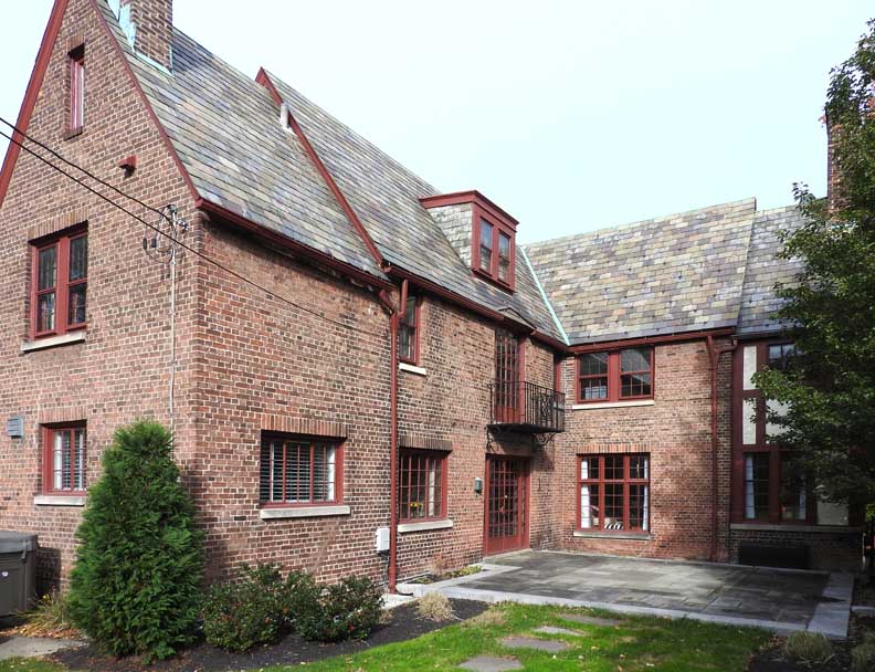 Backyard ![]() View from the patio ![]() Patio ![]() Slate roof and dormer ![]() Slate roof and snow bird snow guards ![]() English bond brick pattern ![]() Garage: Slate roof Pipe snow guards Wavy edge boards English bond brick pattern Two details below: ![]() Slate roof Pipe snow guards ![]() Wavy edge boards English bond brick pattern (detailed below:) ![]() English bond brick pattern |