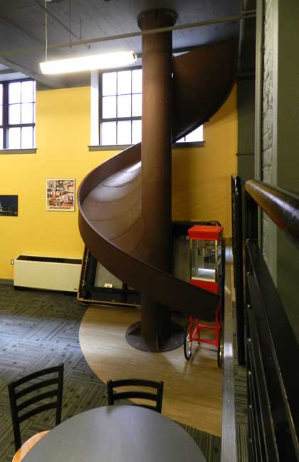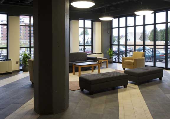 ![]() Lobby ... Industrial Style / Industrial Interior Design Photo courtesy of Katie Schneider Photography ![]() Lobby Photo courtesy of Katie Schneider Photography Original reinforced concrete piller in foreground is typical of those found throughout the building. These provided the structure of the buildings. The exterior walls- "skin" - are not weight bearing. This is a radical departure from 19th and earlier century factory buildings. ![]() Industrial Style / Industrial Interior Design Activity Center wall features hisory mural. Photo courtesy of Katie Schneider Photography Details below: ![]() Activity Center wall history mural - detail: ![]() Activity Center wall history mural - detail: Uppewr left: Mayor Louis Fuhrmann Buildings at Main and Genesee ![]() Activity Center wall history mural - detail. Chute pictured below: ![]() Industrial Style / Industrial Interior Design ... Activity Center: The chute that is illusrtrated in the hisory mural ![]() Activity Center Photo courtesy of Katie Schneider Photography ![]() Living area Photo courtesy of Katie Schneider Photography ![]() Bedroom Photo courtesy of Katie Schneider Photography ![]() Laundry room Photo courtesy of Katie Schneider Photography |
