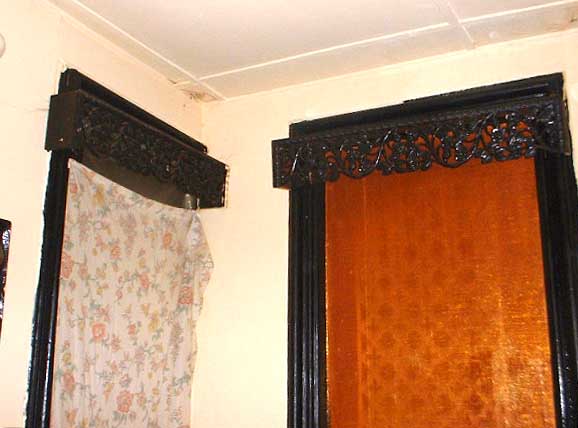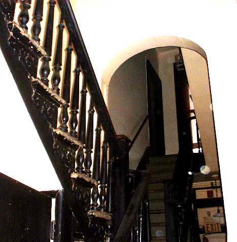 - The two principal staircases are intact down to the spindles. They are visible through a grand, wood-framed arched opening in the party wall installed at some time to connect the two halves of the structure. This creates a distinctive full-height feature is one I have not seen in any other Buffalo house.