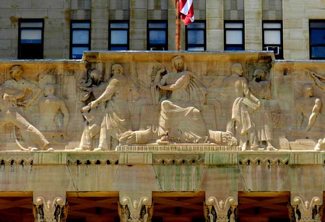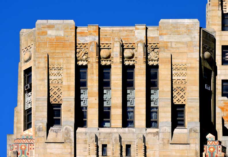2003-2015 photos![]() 2011 photo Built 1929-1931 ... Dietel Wade & Jones, architect ... Art Dco style ![]() 2006 photo ![]() 2012 photo ![]() 2007 photo Left: City Court Right foreground: BAC ![]() 2014 photo ![]() 2007 photo ![]() 2007 photo ![]() 2007 photo ![]() 2004 photo ![]() 2003 photo Native American imagery ... Colored, glazed terra cotta ![]() 2015 photo Art Deco Native American imagery: colored, glazed terra cotta masks ... Art Deco stylized, bas-relief eagles ![]() 2015 photo ![]() 2015 photo Art Deco Native American imagery: arrows with terra cotta tip and stone shafts ![]() 2015 photo ![]() 2015 photo ![]() 2015 photo ![]() 2004 photo Bas-relief stone sculpture ![]() 2012 photo Colored, glazed terra cotta ![]() 2012 photo ![]() 2005 photo Bundled (Egyptian) columns ![]() 2012 photo See also: East frieze photographs ![]() 2012 photo See also: East frieze photographs |