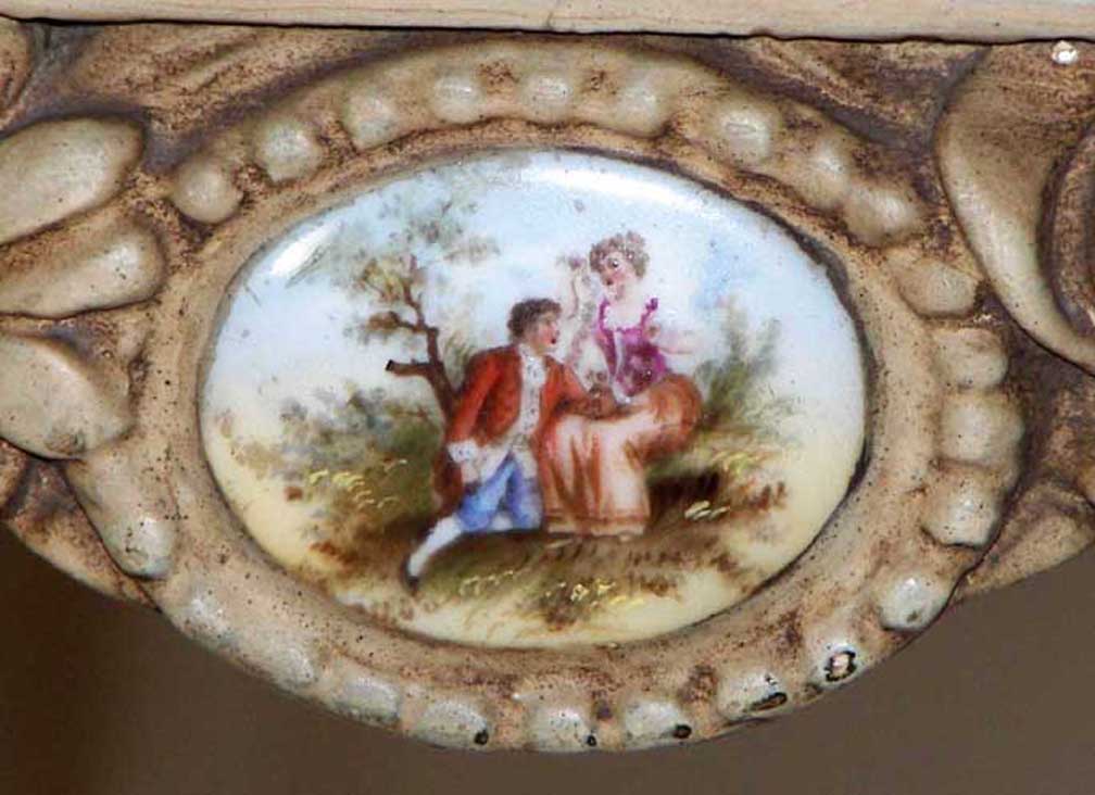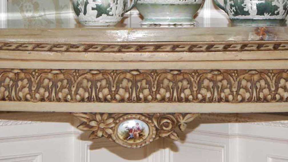 table with Sevres porcelain medallion ![]() ![]() Acanthus leaves on frieze Sevres porcelain medallion ![]() Sevres porcelain medallion ![]() Late 19th century bust ![]() Adamesque Wedgwood Jasperware displayed on C. 1900 3-tier marble etagere