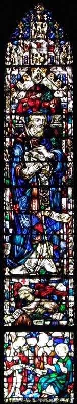 St. Luke Dedicated 1928 Designer: Henry Wynd Young Studio Luke the Evangelist, born of Greek origin in the city of Antioch, was an early Christian leader who the Church Fathers such as Jerome and Eusebius said was the author of the Gospel of Luke and the Acts of the Apostles. 2nd century document: "Luke, a native of Antioch, by profession a physician. He had become a disciple of the apostle Paul and later followed Paul until his [Paul's] martyrdom. Having served the Lord continuously, unmarried and without children, filled with the Holy Spirit he died at the age of 84 years." The Roman Catholic Church venerates him as Saint Luke, patron saint of physicians, surgeons, students, butchers, and artists; his feast day is 18 October. LARGER SIZE beneath top photo |