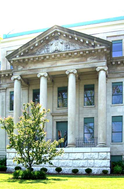 Some captions quoted from the Existing Condition Report: Holy Angels School![]() Cornerstone ![]() ![]() Elaborate attic story: Beaux Arts Classical style ... Two story building with tetrastyle portico and pilasters: Neoclassical style ... Exterior bearing walls are made up of several wythes of brick faced on the outside with Indiana limestone veneer. ... Originally had classroom wings on the north and south ends of a central block ![]() 2016 photo taken from Connecticut Street. Top roof: 4-sided dome topped by pyramidal sky lighted lantern Lower left roof: Copper convex mansard roof with round hooded windows Lower right roof: Straight mansard roof with round hooded windows Cf. mansard roofs at the Louvre Museum, Paris ![]() Center bay monumental tetrastyle portico features Roman Ionic columns ... Mansard roof punctuated by tubular shaped dormers faced with round, wood-framed windows ![]() Tetrastyle portico features Roman Ionic columns and pilasters ... Three details below: ![]() Portico detail #1 - Indiana limestone ... Block modillions support pediment ... Tympanum: Angels and acanthus leaves flank cartouche (detailed below:) with leaves, S scrolls, and C scrolls ... Roman Ionic columns ![]() Symbol of Missionary Oblates of Mary Immaculate that founded Holy Angels church and school ... Cross covered by crown of thorns and sun rays ... Source: Diocese of Hamilton (online Jan. 2017) ![]() Portico detail #2 - Roman Ionic column ... Tuscan pilaster with egg-and-dart-decorated capital ... Indiana(?) limestone ![]() Portico detail #3 - Wrought iron balustrade features S scroll motif ![]() .. Mansard roof punctuated by tubular shaped dormers faced with round, wood-framed windows ![]() Copper round hooded windows ... Block modillions support pediment ... Tuscan pilaster with egg-and-dart-decorated capital ... Indiana(?) limestone ![]() ![]() Air vent ... Sheet metal convex mansard roof with round hooded windows ... Block modillions ![]() Straight mansard roof with round wood-hooded windows ... Block modillions ![]() Tuscan pilasters with egg-and-dart-decorated capital ![]() 2 bay west wing ... Four foot high parapet tops left bay |