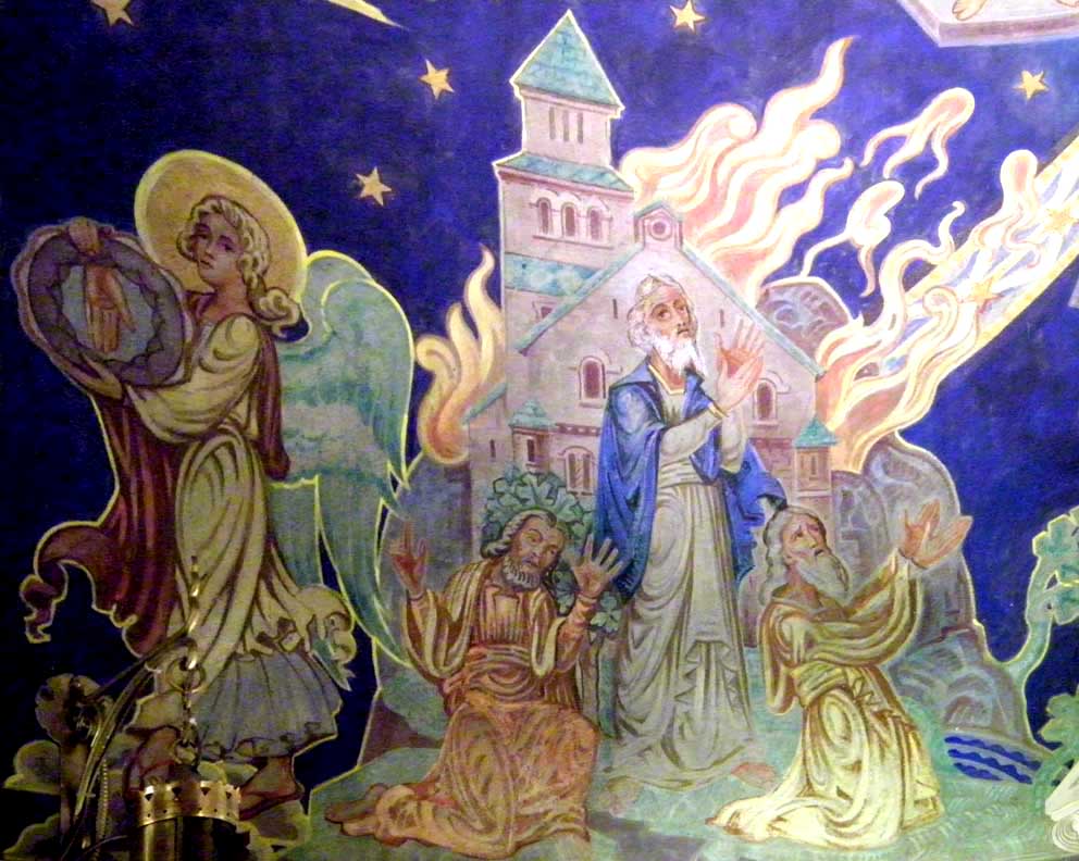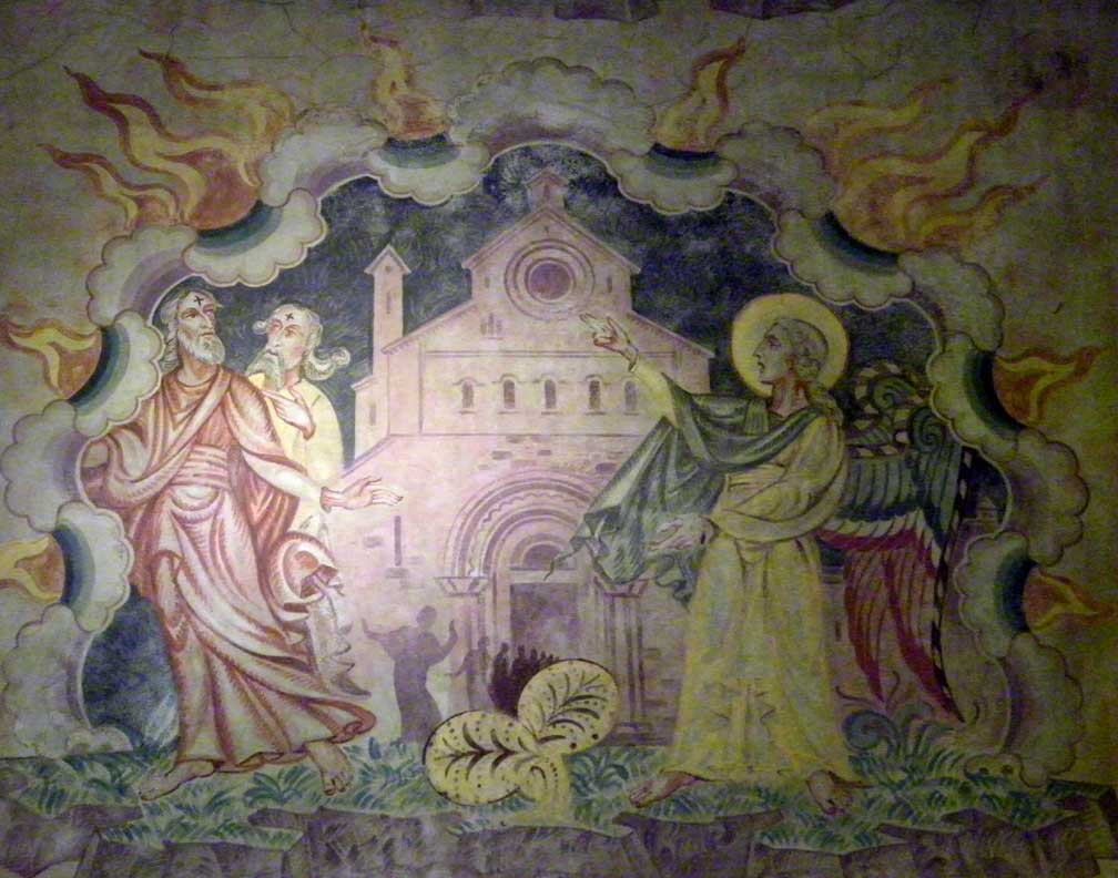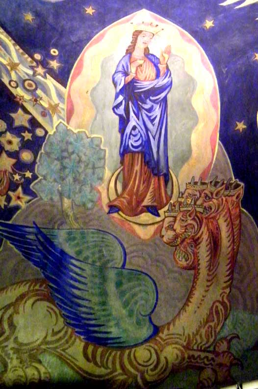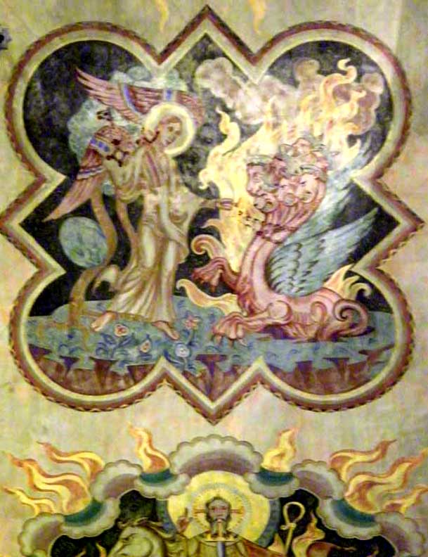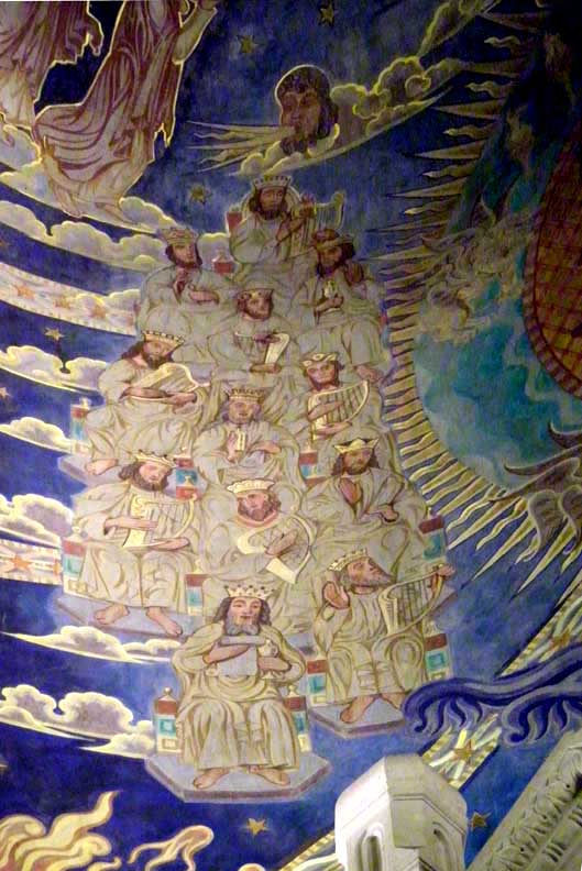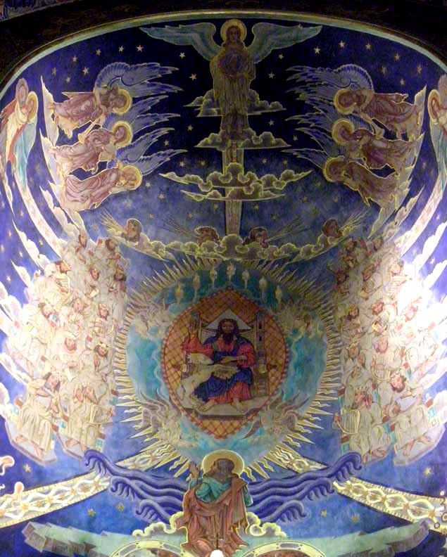 St. John the Evangelist's Book of Revelations![]() Sanctuary / apse ... St. John the Evangelist ... Details below: ![]() Revelation 12: Michael Battling the Dragon ![]() Scene from the Book of Revelation ![]() Scene from the Book of Revelation ![]() Revelation 4: The Throne in Heaven ... Three details below: ![]() Revelation 4: The Throne in Heaven - Detail #1 ... Christ surrounded by a mandorla ![]() Revelation 4: The Throne in Heaven - Detail #2 ![]() Revelation 4: The Throne in Heaven - Detail #3 ![]() Scene from the Book of Revelation ![]() Scene from Revelation 4: The Throne in Heaven ... 12 of the "twenty-four elders. They were dressed in white and had crowns of gold on their heads." ![]() Revelation 12: The Woman and the Dragon ... Mary surrounded by mandorla |