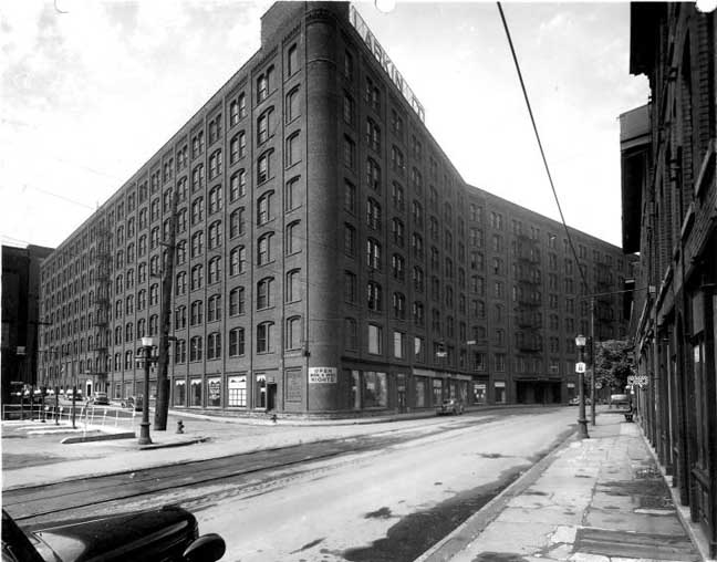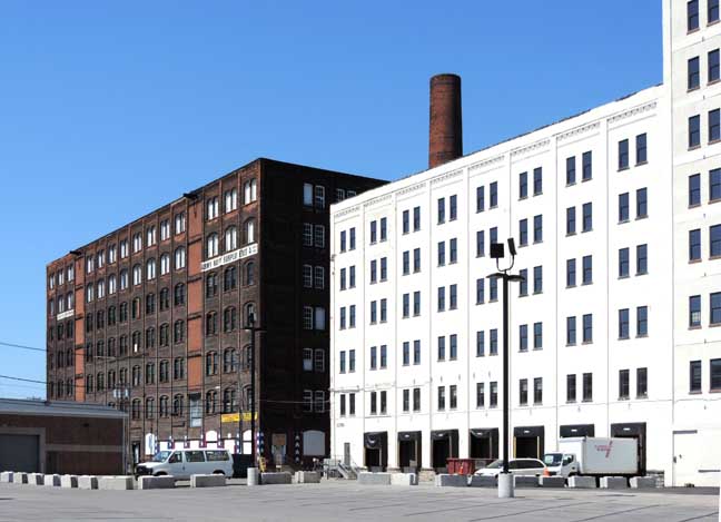 1913. Primarily a 6-story industrial building, it features numerous aligned and regularly spaced window voids, loading docks and shipping bays on the ground floor and a corbeled cornice along some portions of the roofline. The building was resurfaced in a cement-like finish sometime in the 1960s, - Jennifer Walkowski, Nomination: