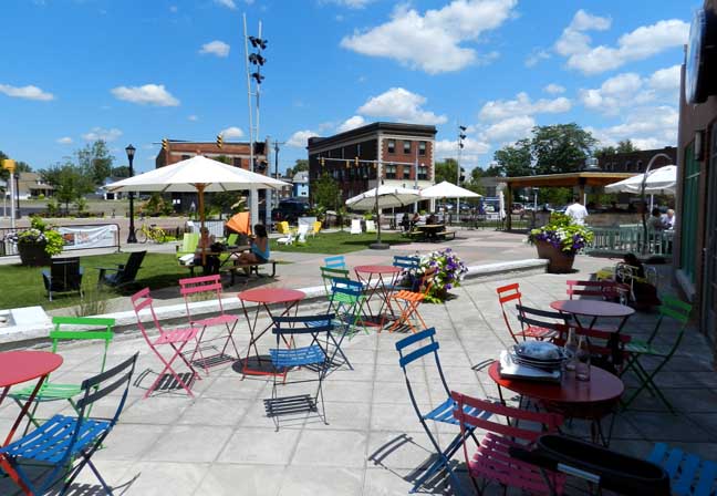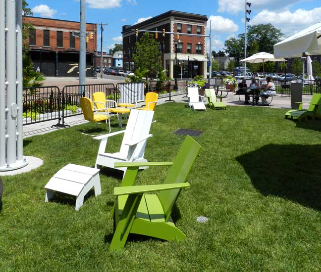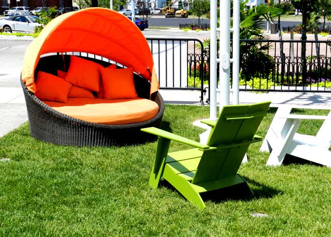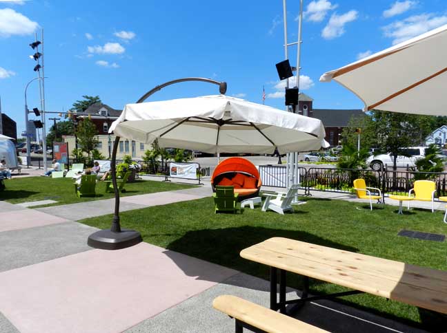 The mostly-stationary food truck (trailer) is also located next to the newly opened Filling Station restaurant with a sixteen seat patio for patrons to share. Either that or sit at one of the many colorful lawn seats, some of which are now shaded with gigantic patio umbrellas.