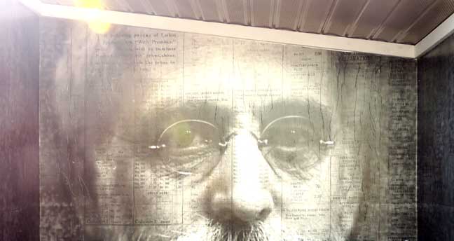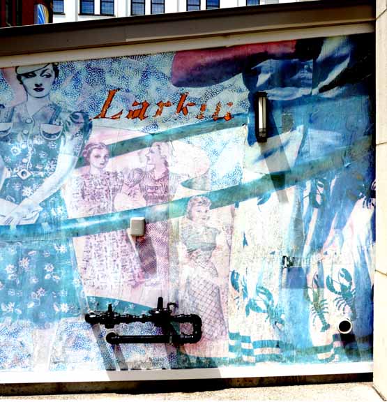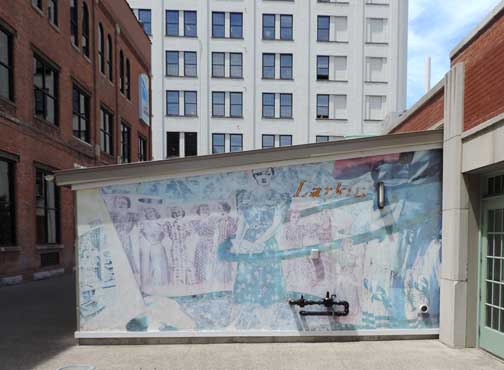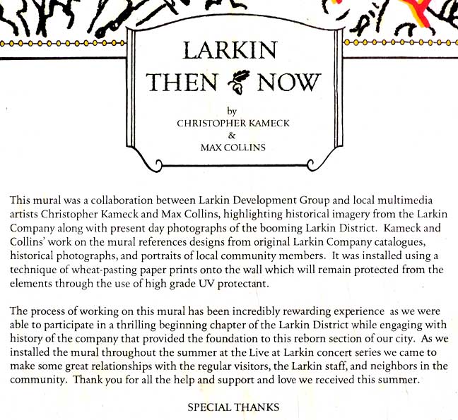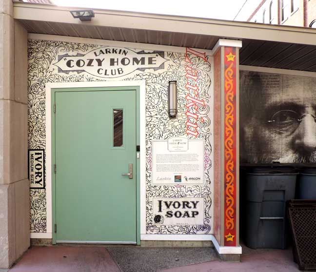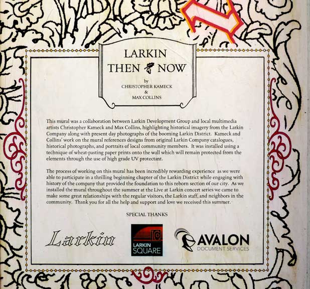 2014 photo ... Mural behind (south) the Filling Station Restaurant ... Images from a Larkin Co. catalog.