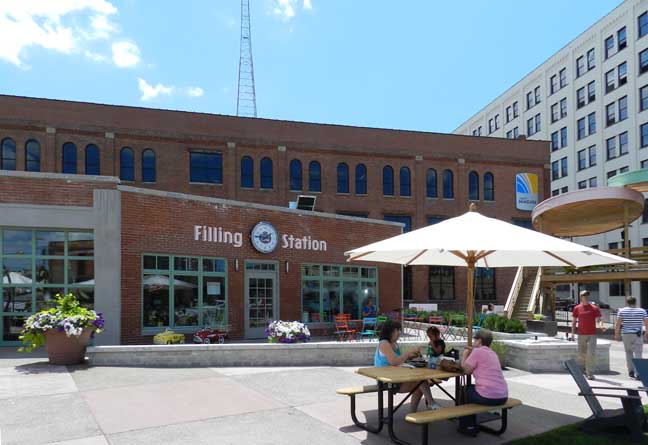 The Filling Station was operated by Gulf Oil until the 1990s when it closed and remained vacant until Larkin Development Group renovated the property in 2012 to house a full service, contemporary restaurant.
