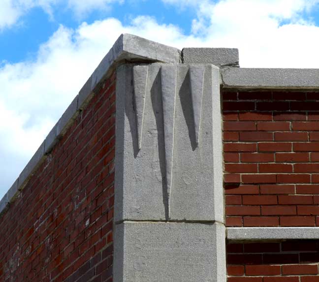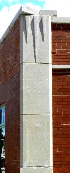The Filling Station was purchased in 2009 by Larkin Development Group who quickly removed the metal panels, thus revealing the original brick and concrete structure. The capitals of the concrete columns display an ‘icicle’ motif, and have been fully restored on the building’s exterior.