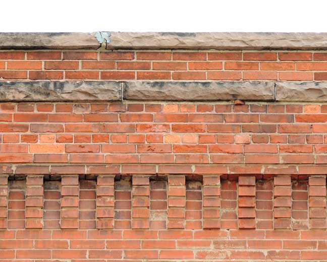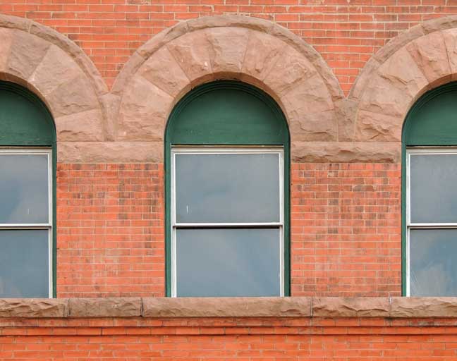 ![]() Top of building: Medina sandstone string course ... Brick corbel table ![]() Medina sandstone voussoirs