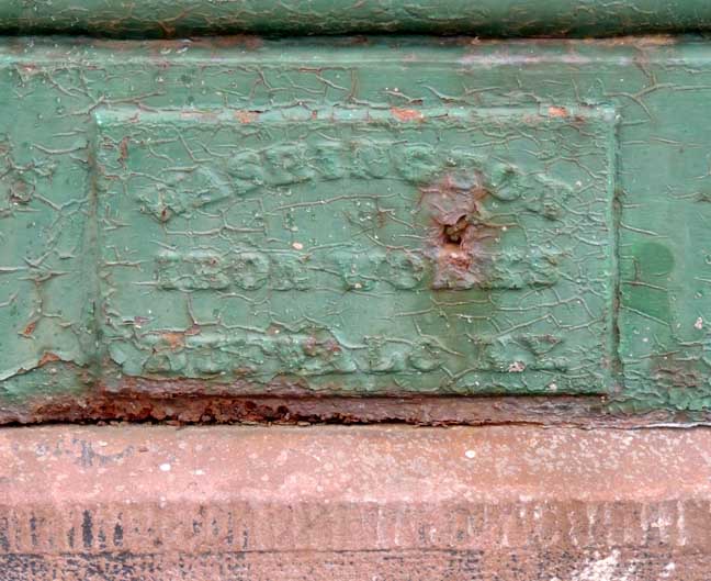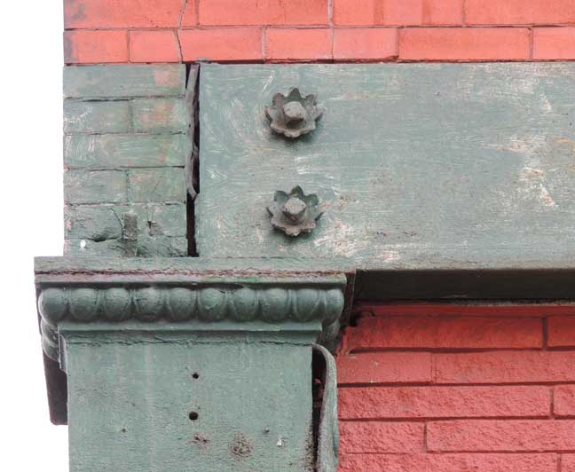 ![]() Cast iron acanthus leaves on capitals ![]() Corner cast iron pilaster. Note top and bottom name plate at bottom (detailed in photos below). ![]() Egg molding ![]() Washington Iron Works, Buffalo N.Y. |