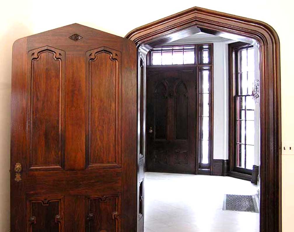 Living room ![]() Door leading to the entrance hall ![]() Living room alcove. Note basket-handle arch, one of two in the room ![]() Living room Detail