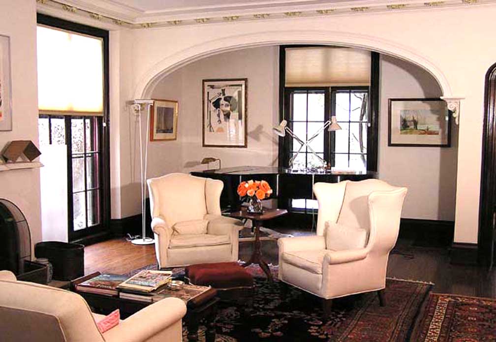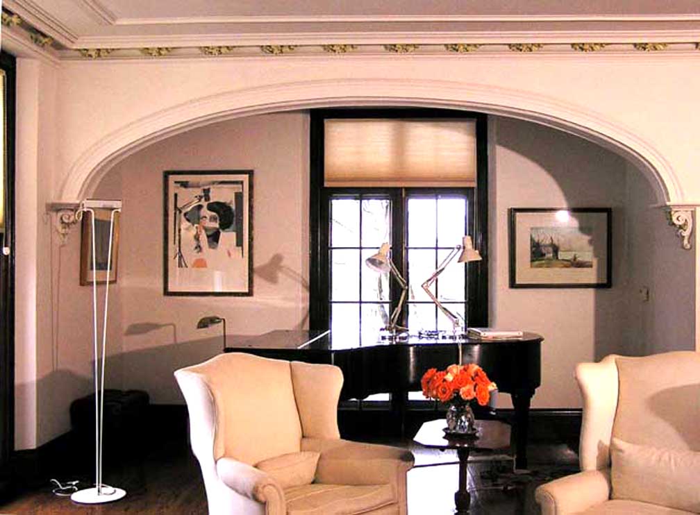 arch, one of two in the room ![]() Living room Plaster corbel-supported basket-handle