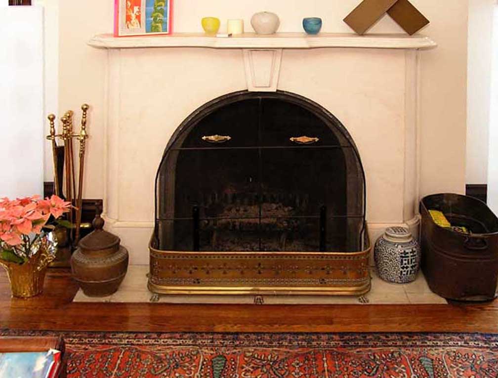 plaster ivy leaves ornamentation under cornice ![]() Living room Living room fire place dating from the earlier decade. Harold Olmsted was well-known for salvaging architectural elements and reusing them in his reconstruction work