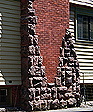 massive rusticated stone and brick chimney with specially