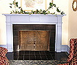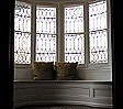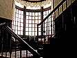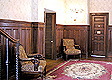 Reception hall. Main entrance is at upper left of photo. Note transom window (washed out) in photo |