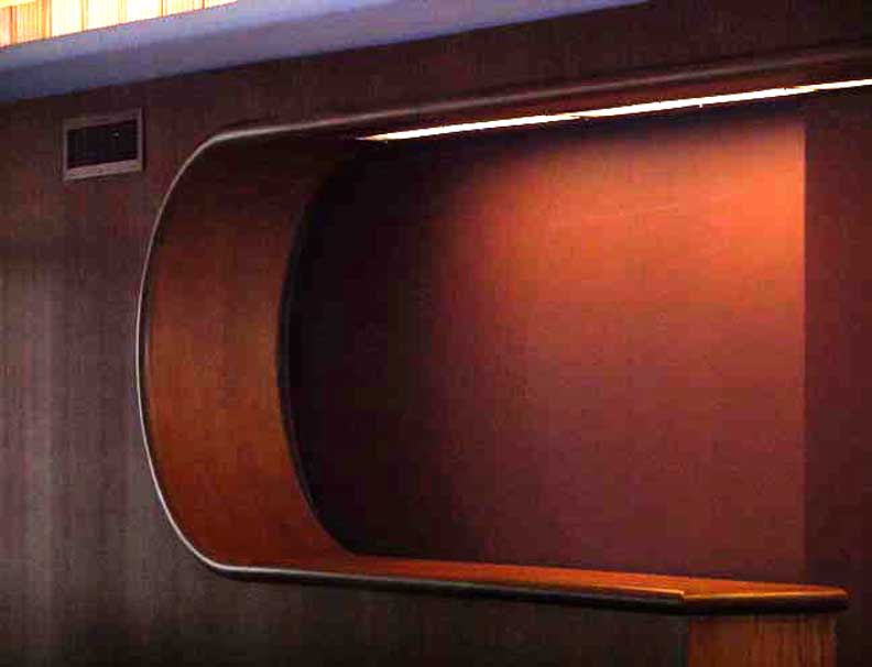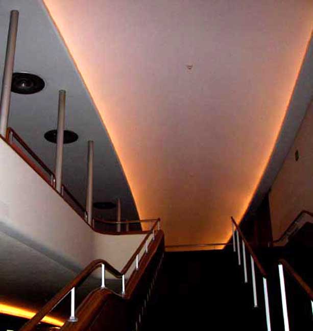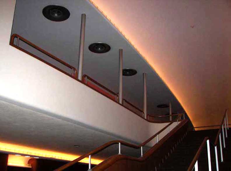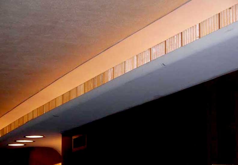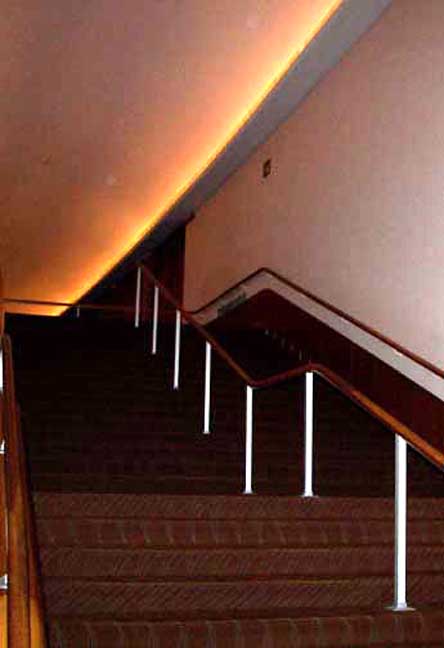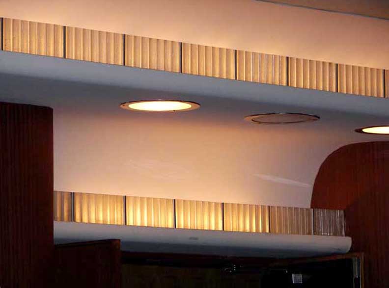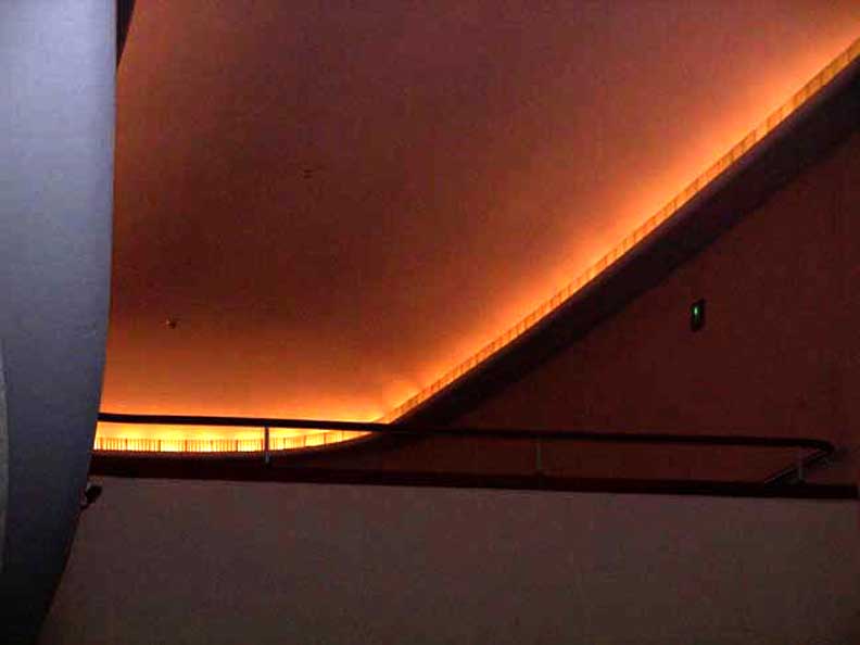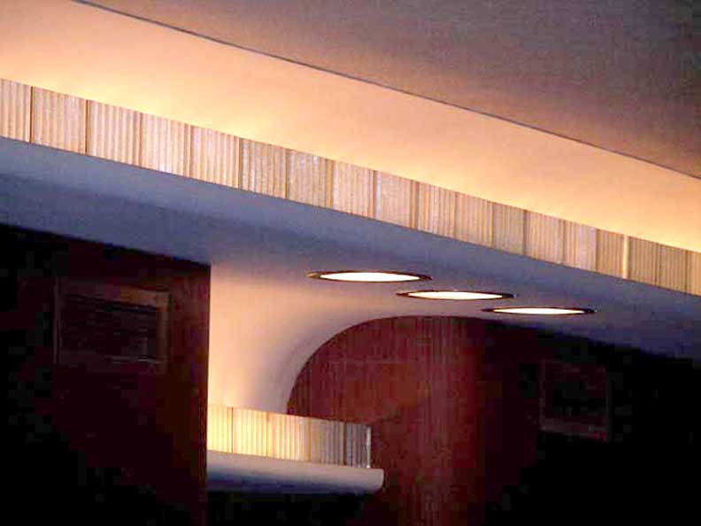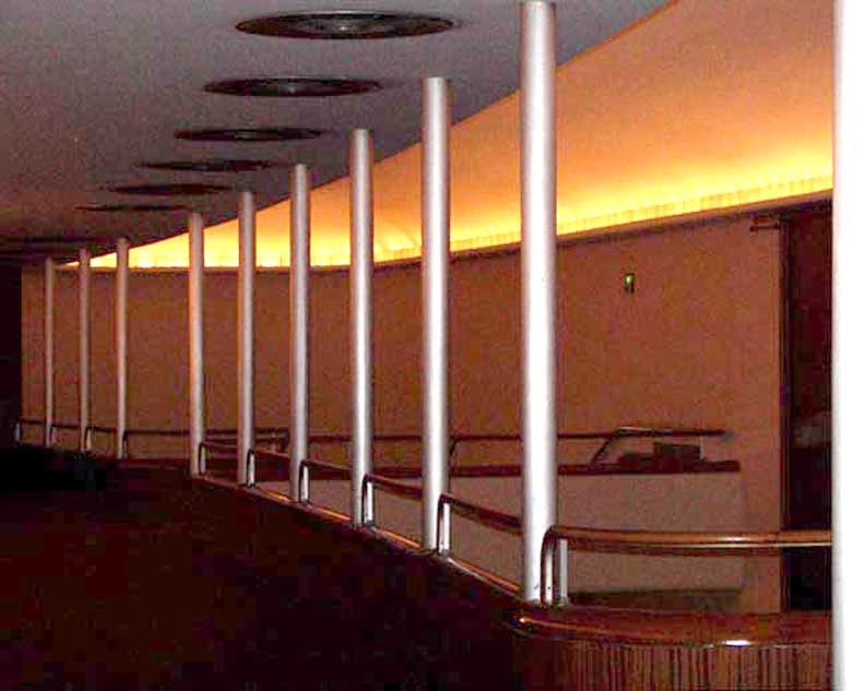 Lighting over auditorium entrance ... View of balcony from first floor lobby ... Detail below: