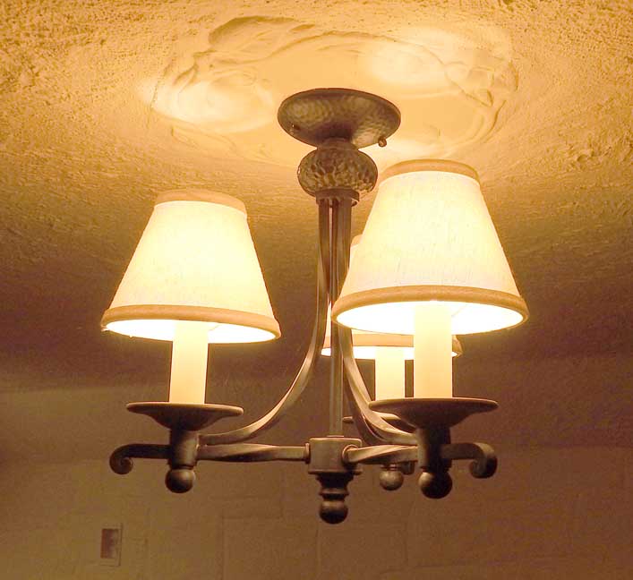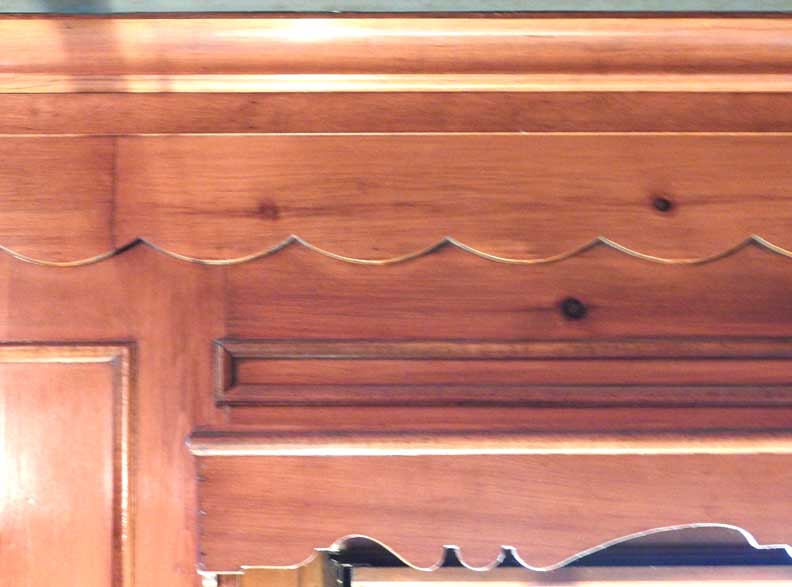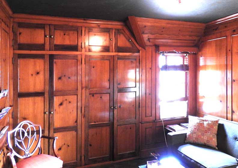 ![]() Knotty pine paneled room ... Note woodwork above the window, detailed below: ![]() Scallops and panels ![]() Room probably used as Architect Greenstein's office ![]() |
