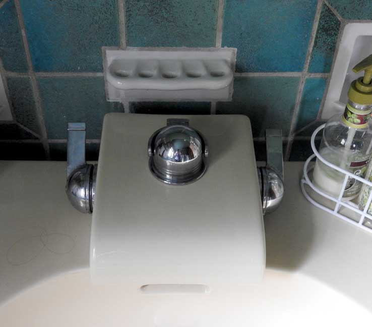 look of the late 1930s. The rectangular sink top was perched on a china
