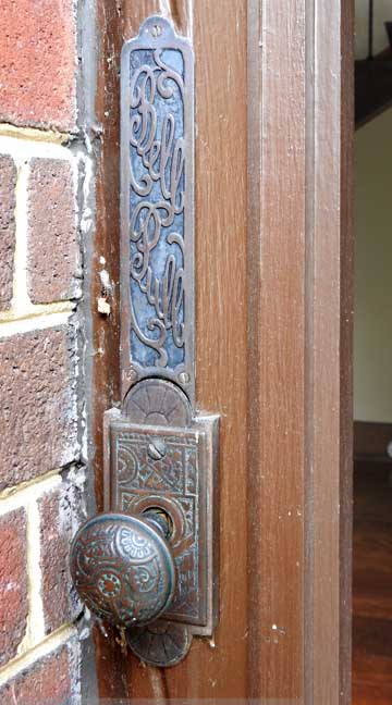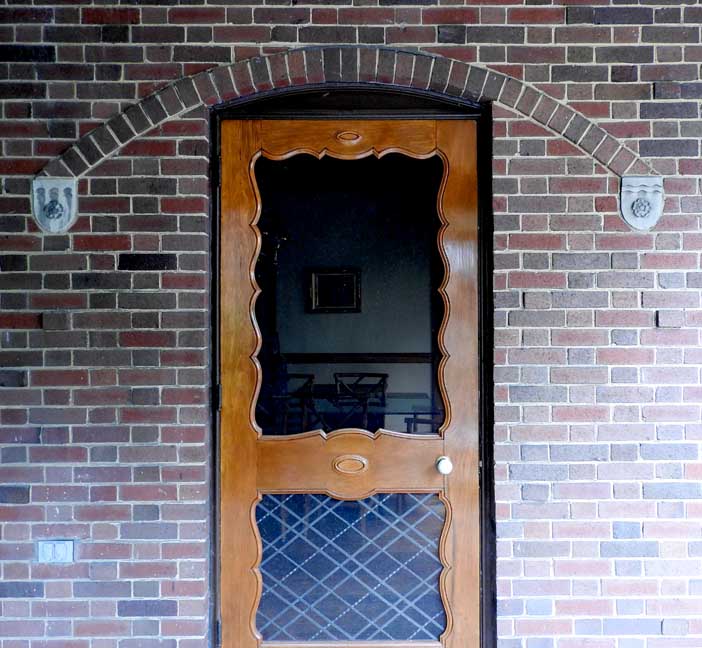Back yard 2017 photos ![]() Note awning-covered patio ![]() Awning-covered patio at bottom ![]() Brick wall on side of awning-covered patio ![]() 1930 door on the awning-covered patio ![]() Original water feature ![]() Flemish bond brick pattern ![]() Strapwork pattern on back of the 2-seat wooden chair ![]() |