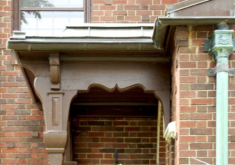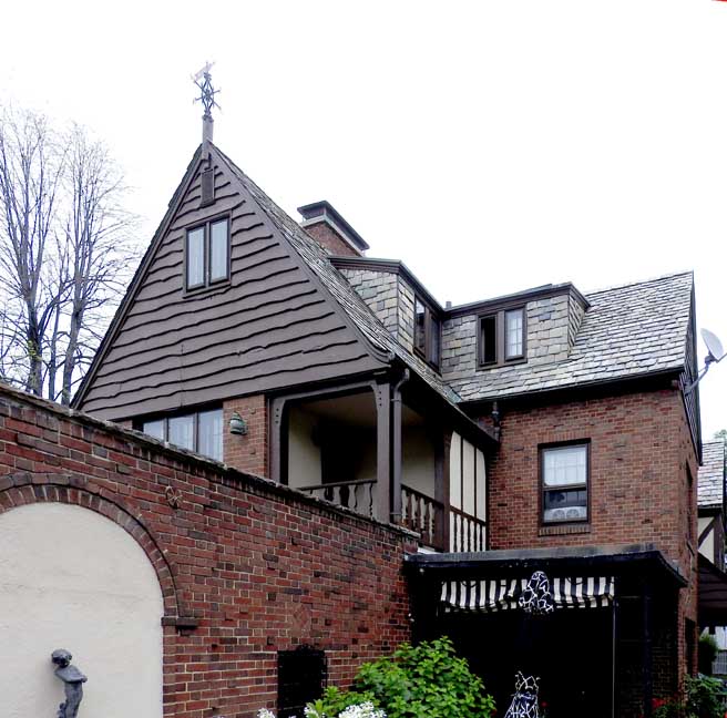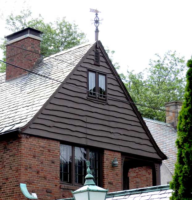 ![]() North elevation ... Note oriel window ... Brick wall from the original Albright estate ![]() North elevation ![]() Original weather vane ![]() North elevation ... "The lot is framed along its north border by the brick wall from the original Albright estate. (Neighborhood walkers know that it matches the wall on West Ferry, delineating the enormous perimeter of the original estate.) That wall with its camel-back top was intact ..." - Barry A. Muskat |