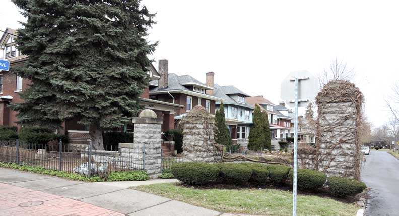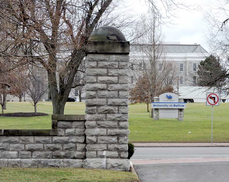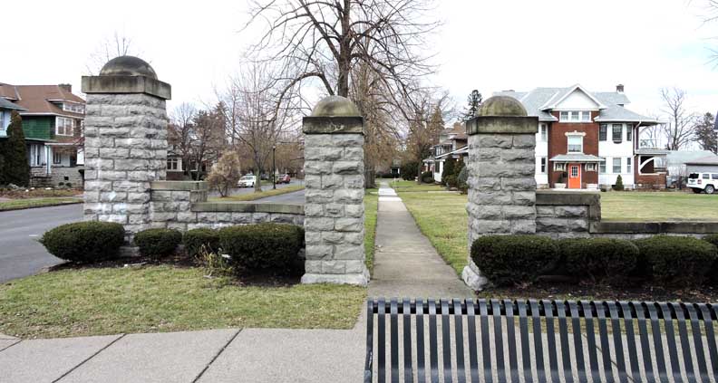Entry Gates ![]() University Avenue entry gates at Main St. ... Onondaga limestone ![]() University Avenue entry gates at Main St. ... Onondaga limestone ![]() University Avenue entry gates at Main St. ![]() University Avenue entry gates at Main St. ![]() University Avenue entry gates at Main St. ![]() University Avenue entry gates at Main St. ... 12' high ![]() University Avenue grassy median |