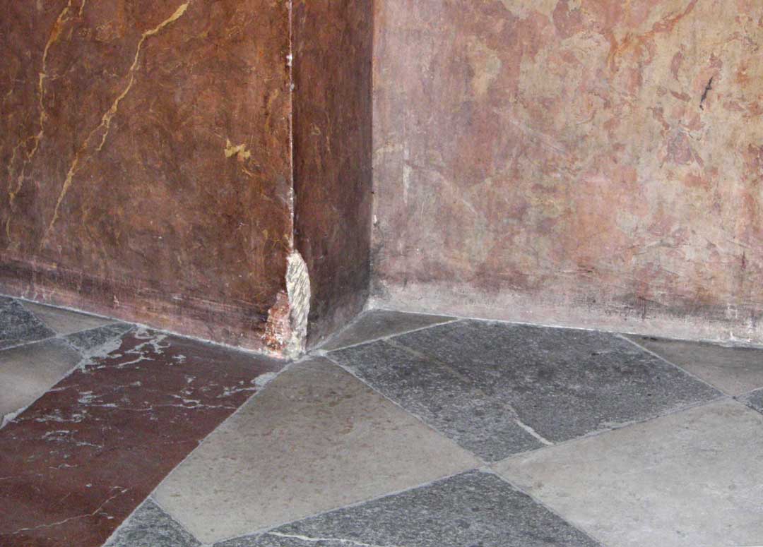 marble walls - note the chip out of the plaster