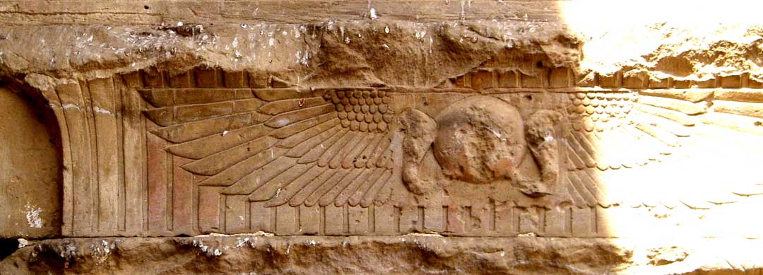 Solar( Sun) disk flanked by 2 cobras and outspread wings