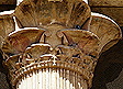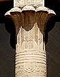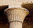 Bundled papyrus stalks, painted red lotus flowers and volutes |