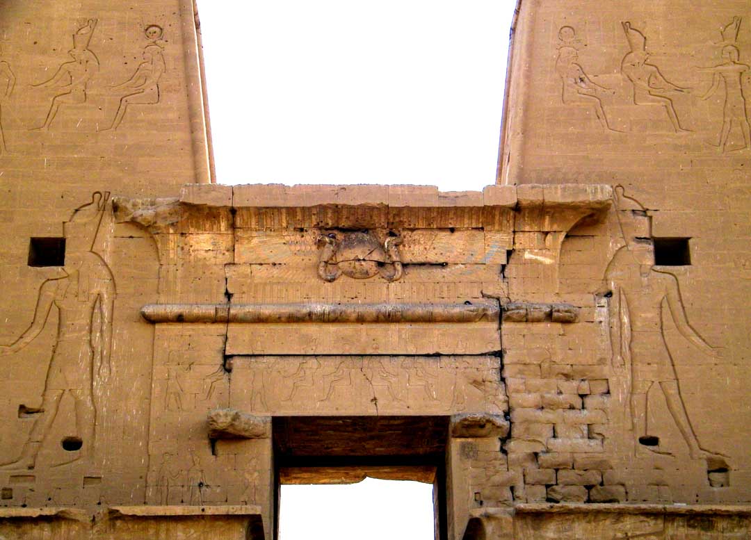 Solar(Sun) disk flanked by 2 cobras and outspread wings