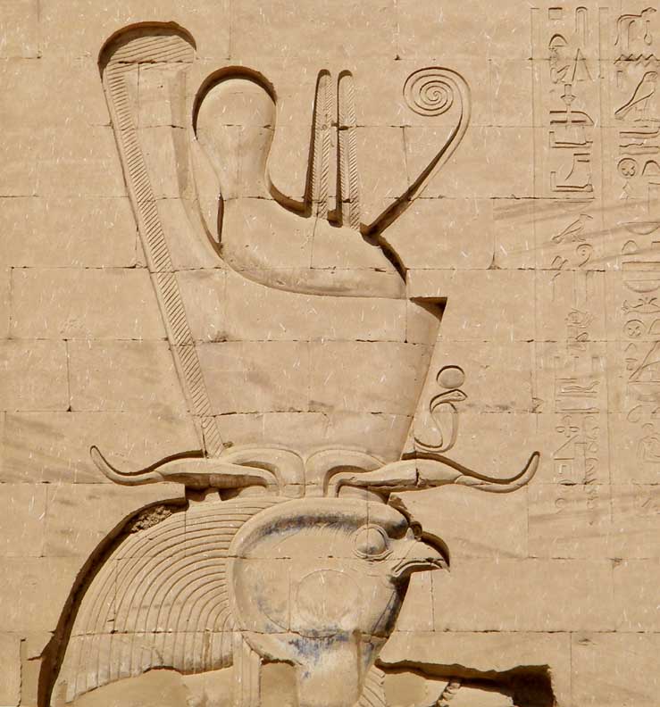depicted as falcon -headed and wearing