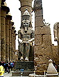 Known in the Egyptian language as ipet resyt, or "the southern sanctuary", the temple was dedicated to the Theban Triad of Amun, Mut, and Chons and was built during the New Kingdom, the focus of the annual Opet Festival, in which a cult statue of Amun was paraded down the Nile from nearby [northern] Karnak Temple (ipet-isut) to stay there for a while, with his consort Mut, in a celebration of fertility - whence its name.The main part of the temple - the colonnade and the sun court were built by Amenhotep III, and a later addition by Rameses II, who built the entrance pylon, and the two obelisks (one of which was given to France, and is now at the center of the Place de la Concorde) linked the Hatshepsut buildings with the main temple.