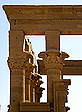 Built by the roman emperor Emperor Trajan (reigned AD 98-117) , the kiosk has 14 massive columns with carved floral capitals. The capitals of the plant columns were intended to be surmounted by sistrum ((a percussion instrument that become a representative cult object of Hathor)) capitals.