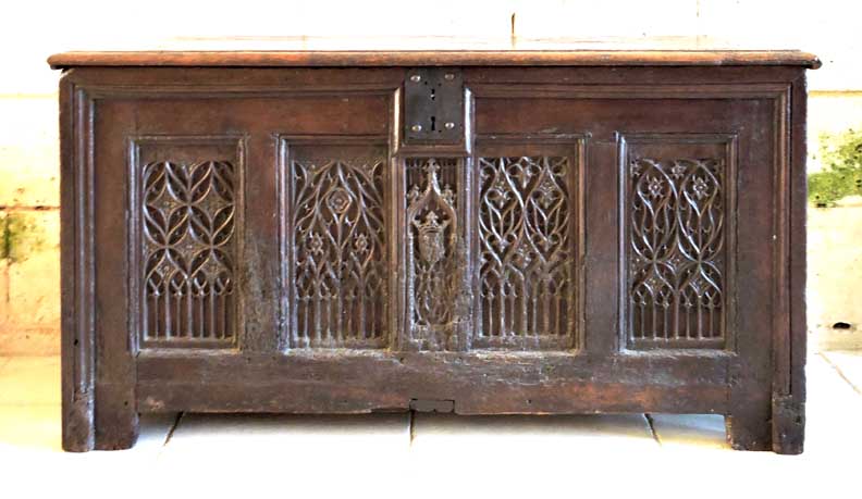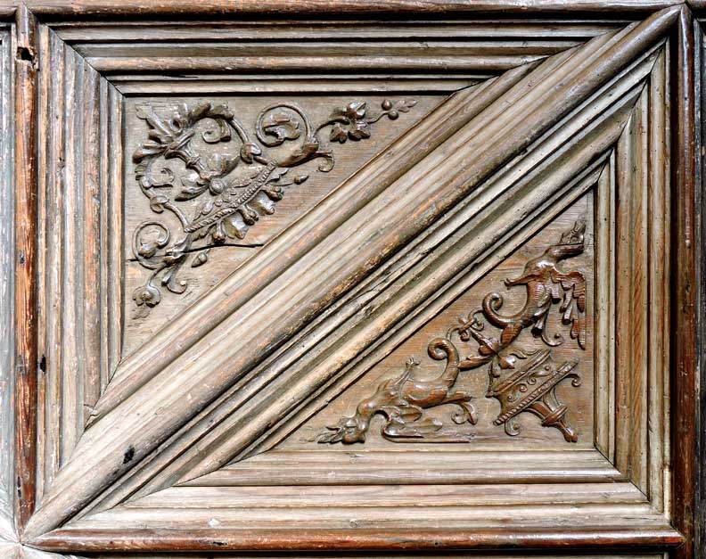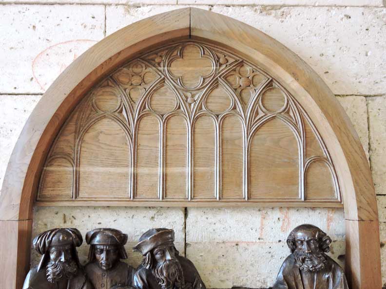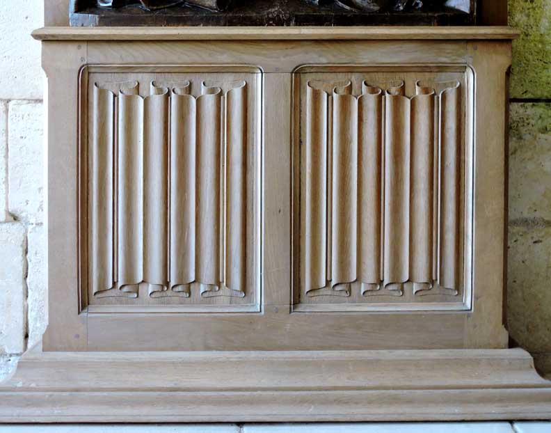 ![]() Details below: ![]() Gothic pointed arch ... Tracery in tympanum ... Center quatrefoil ![]() ![]() ![]() ![]() ![]() ![]() Linenfold design |