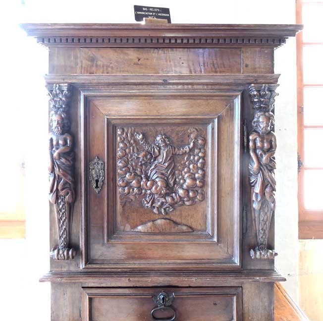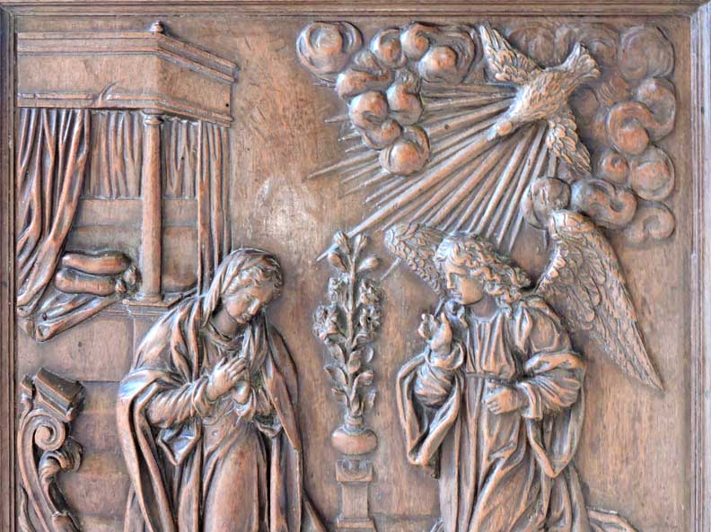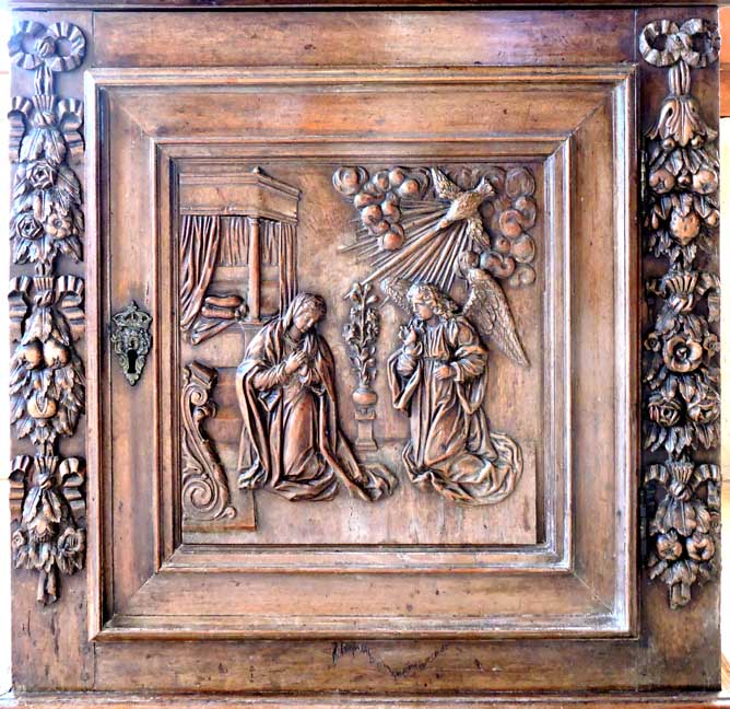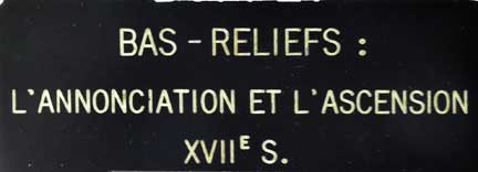 ![]() ![]() ![]() Bas-reliefs: The Annunciation and The Ascension, 17th Century (Baroque style) ![]() The Ascension ![]() Terminus ![]() The Ascension ![]() The Annunciation: Ancone-shaped-prie dieu ... Mary ... Lilies ... Holy Spirit (dove) ... Archangel Michael ![]() The Annunciation: Ancone-shaped-prie dieu ... Mary ... Lilies ... Holy Spirit (dove) ... Archangel Michael |
