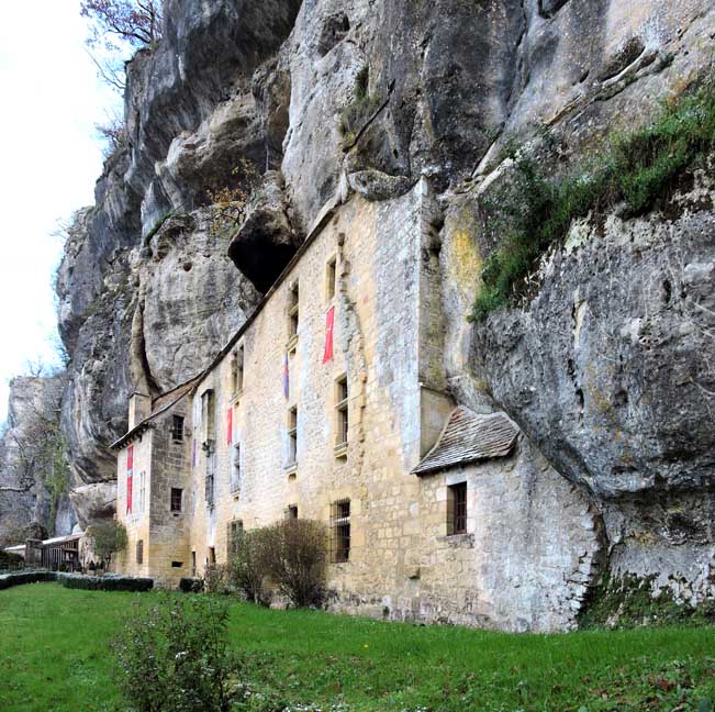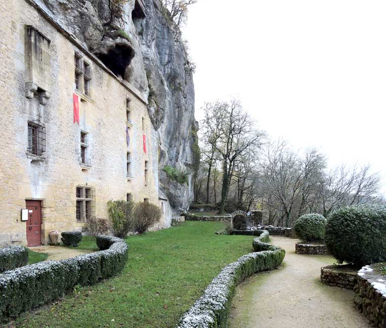 Omega Digital: Maison Forte de Reignac: The Most Unusual Castle in France By Ron Engeldinger (online Dec. 2015) Every year millions of tourists visit the renowned castles of Europe, but very few of them find their way to the Maison Forte de Reignac, a masterpiece of medieval construction located near the tiny village of Tursac in the Dordogne Region of southern France. High above the Vezere River, the visitor sees a castle emerge from the face of the sheer cliff. Half-buried in the surface of the limestone precipice, this fortress is unique among the country’s many chateaux. In French this type of castle is known as a “chateau falaise” or cliff castle, and this is the best preserved of the few cliff castles that still remain in France. This 14th-century citadel is carved into a grotto where Cro-Magnon man first made a home. The cave holds evidence of more than 20,000 years of human habitation. Additional construction occurred in the 16th century but little has changed since then. Originally built as a secure defensible fortification from which the lord of the manor could watch over his property and protect it from raiders, the castle now sits quietly above the river valley offering grand views. Unlike many French castles, Maison Forte de Reignac was never involved in any major battle and it is doubtful that it would have withstood an attack from a large well-armed force. However, the defenses were ideal to keep the inhabitants safe from marauding bandits. Once the stronghold of descendants of the famous French pirate Jean Bart, the castle has been home to many rulers over the centuries. Listed as a National Historic Landmark in 1964, for decades the privately owned site was open solely to researchers. In 2006, the current owner [Jean Max Touron] opened the castle for the public to enjoy. |