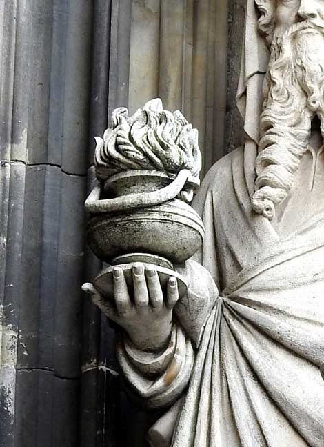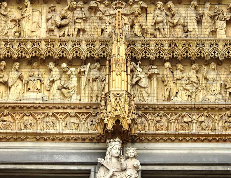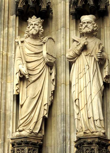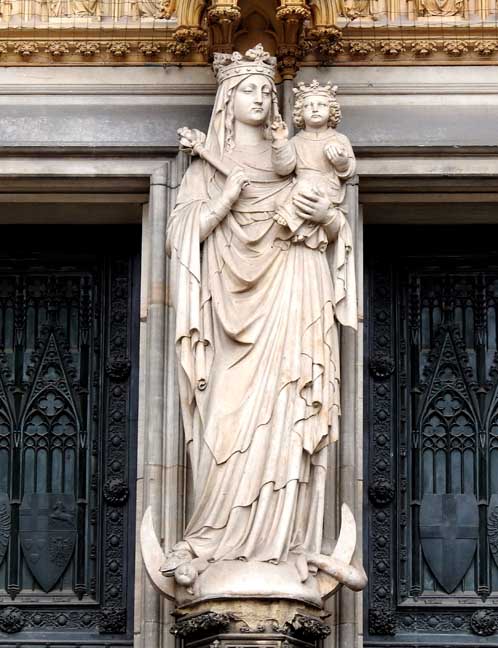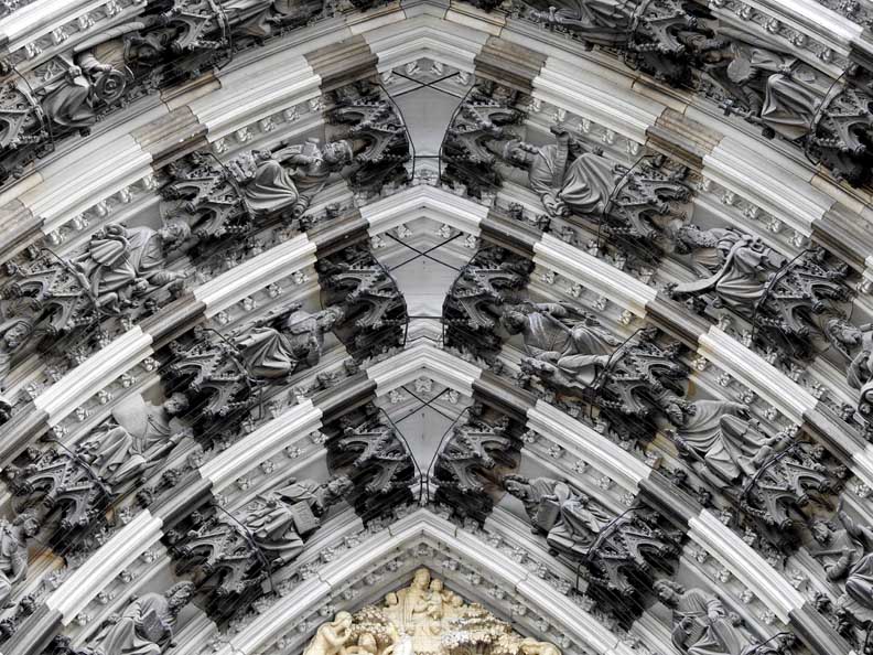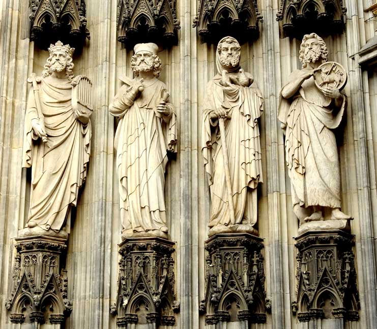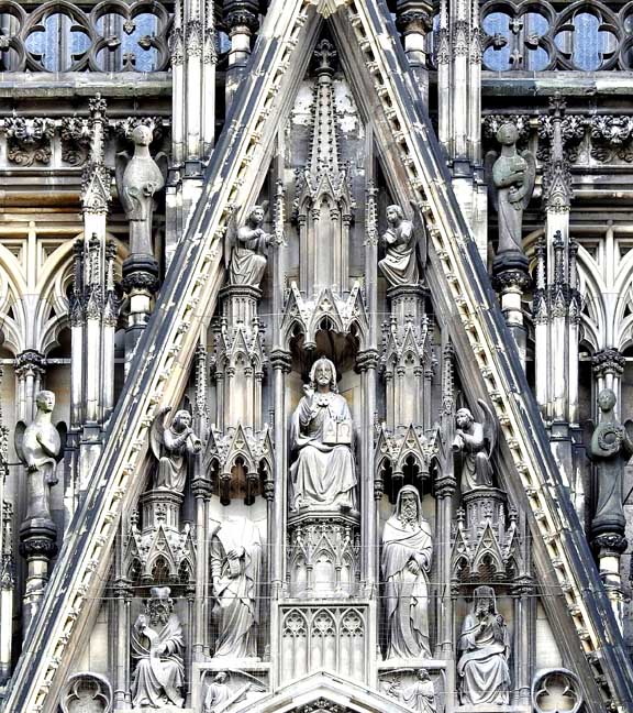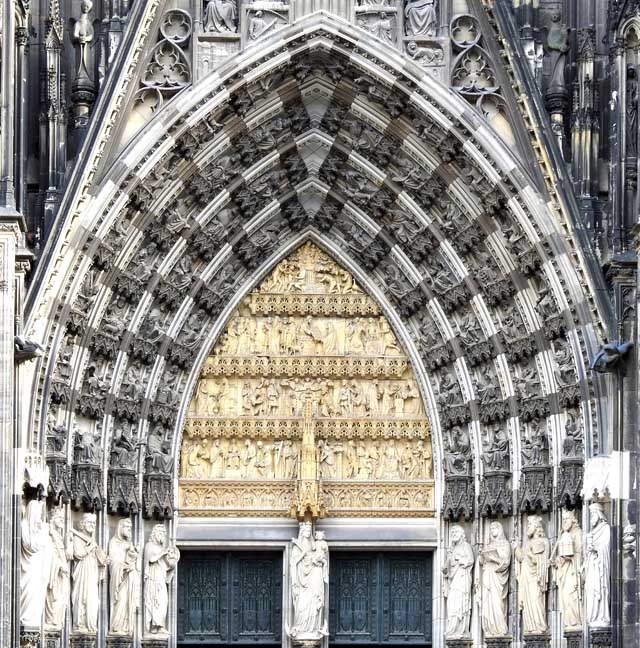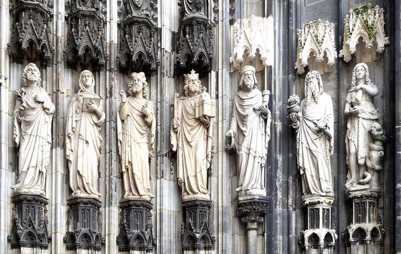 All sculptures of the Cathedral are made by Christian Mohr and Peter Fuchs. The three portals of the west façade are the Magi Portal, the Main Portal and St. Peter's Portal.